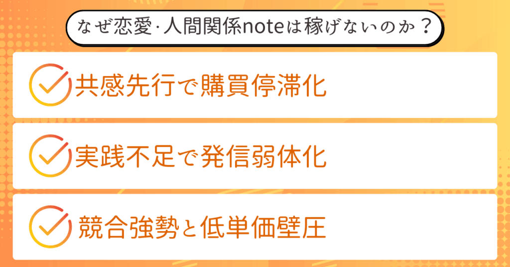 - 恋愛・人間関係noteは共感されても購入されにくい