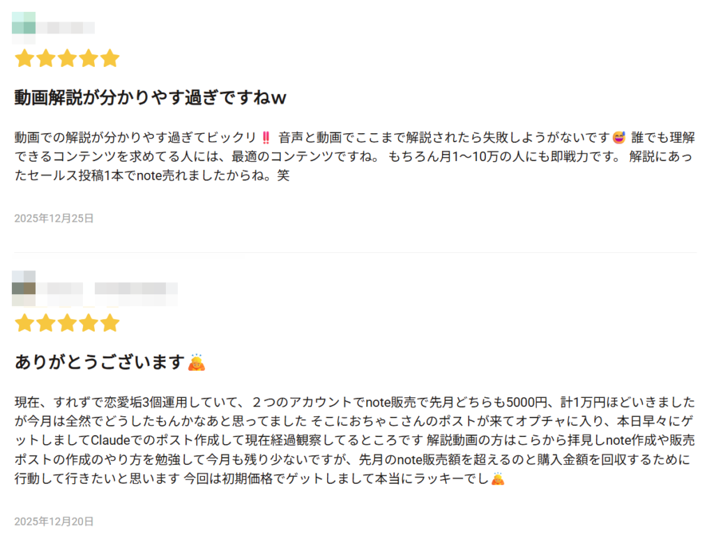 副業でゼロから収益を作りたい人や、時間や実績がなくても再現性のある方法でnote販売に取り組みたい人にお勧めの内容です。