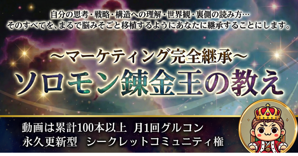 錬金王さんのBrainソロモン―小さな経済圏を作り、一生安泰の人生になるOSをインストールする―では、小さな経済圏を作り、安定した収益基盤を築くための手法を、シンプルかつ継続前提の形で公開しています。
