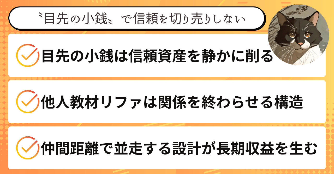 ここから先は、〝目先の小銭〟ではなく、長期的な信頼と収益を積み上げるための具体戦略をお届けします。