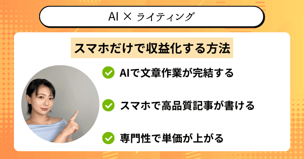 つまり、スマホとAIを掛け合わせることで「小さなスキマ時間が収益に変わる」状態を作れるのです。