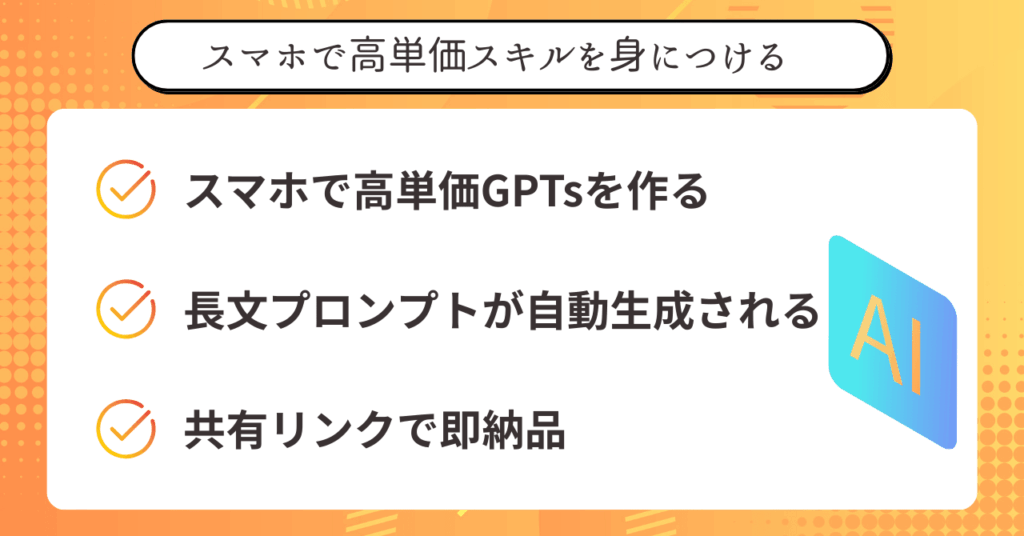 ライティング・Threads・GPTs開発など、どれもスマホだけで始められます。
