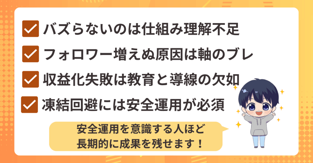 理由は、ただ投稿を続けるだけではアルゴリズムに埋もれ、フォロワーも収益も伸びにくいからです。