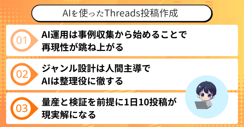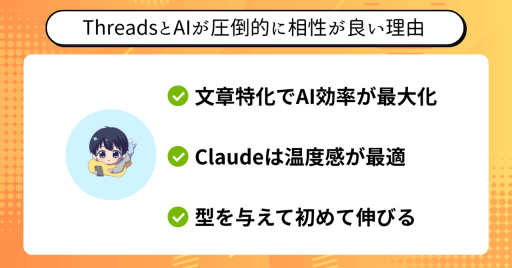 特にThreadsは、文章中心の設計であるため、AIとの相性が抜群です。