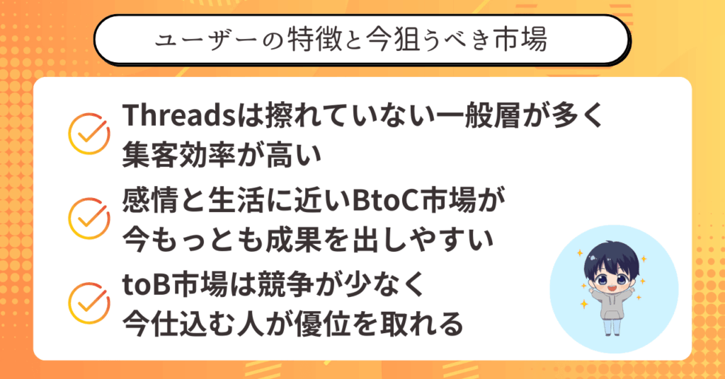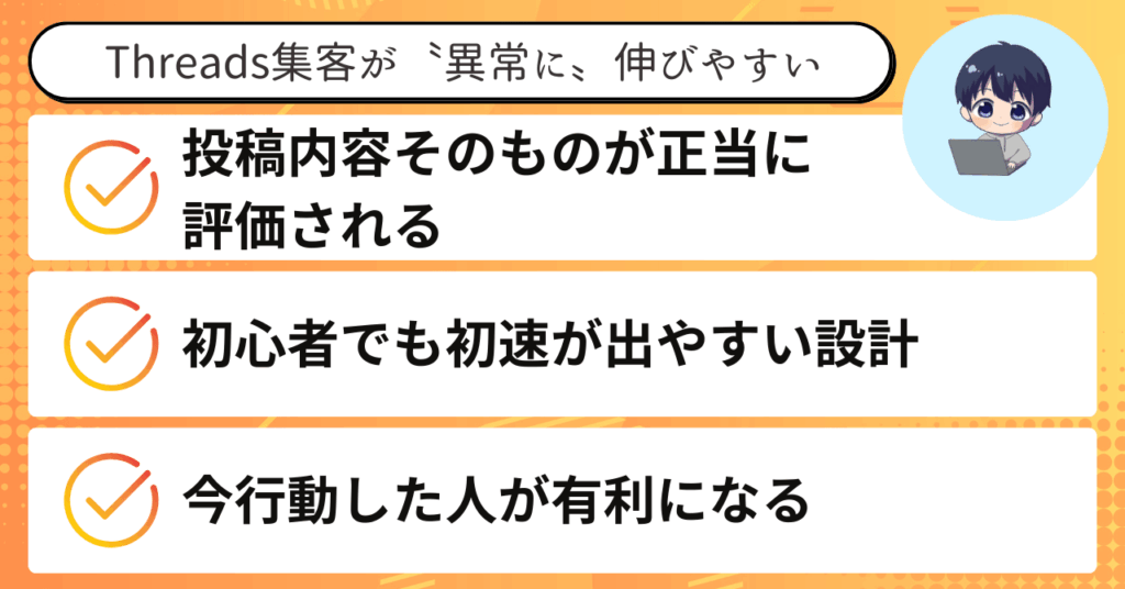 逆に言えば、Threadsの特性を正しく理解できれば、初心者でも一気に結果を出せる可能性があるということです。
