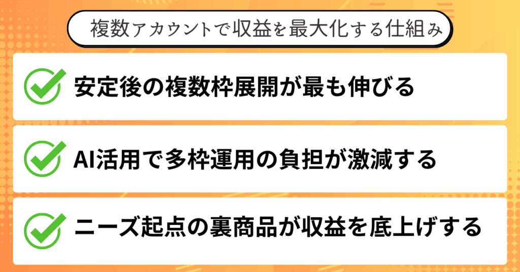 AIを適切に使うことで、複数アカウント展開は〝誰でも実現できる戦略〟へと変わります。