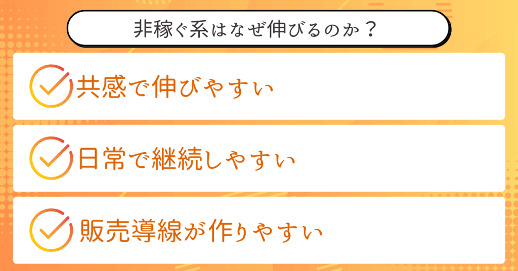 ここでは、非稼ぐ系がなぜ伸びやすいのか、その根拠を実践者の視点から深く掘り下げていきます。