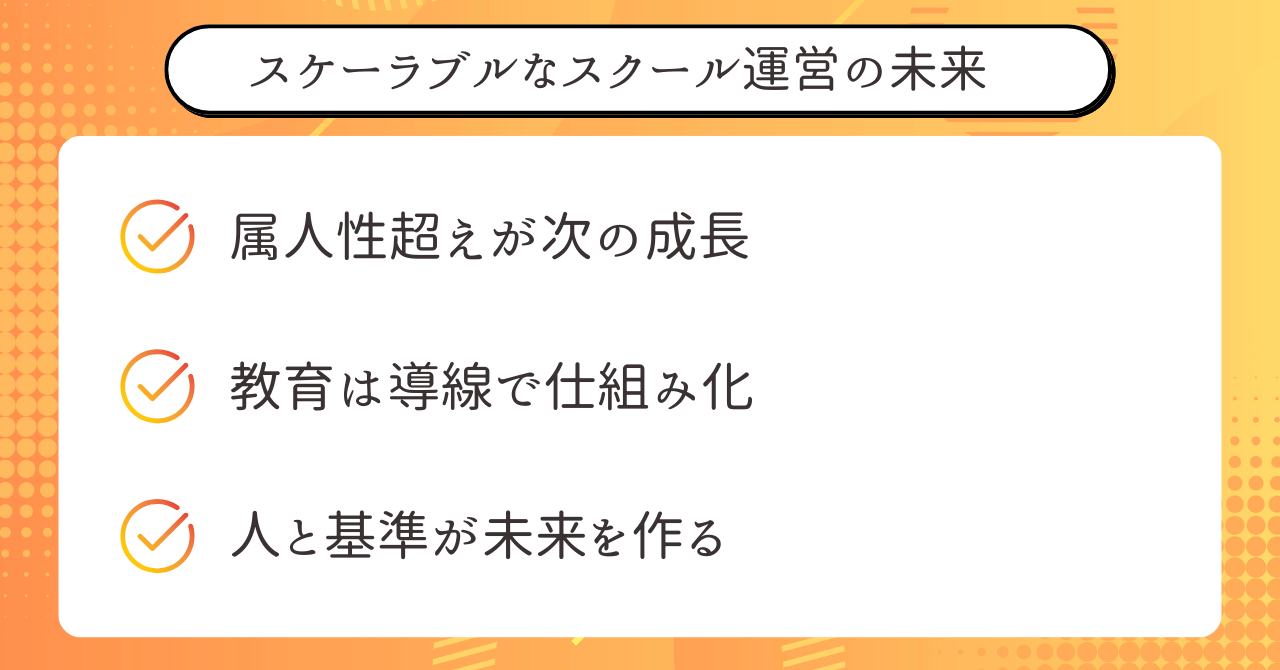 教育を仕組みに任せることで、全体の質が安定します。