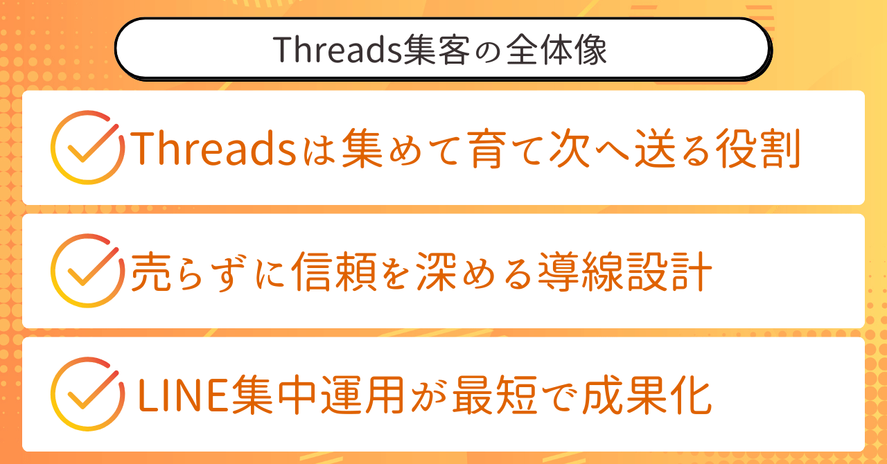 Threadsは集客と教育の場であり、LINEは信頼を深めて判断してもらう場です。
