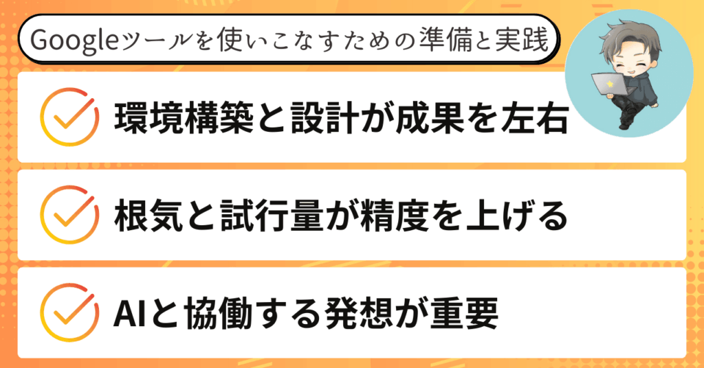 プロンプトの精度を上げるには、AIの癖を理解し、複数のパターンをテストしながら最適な指示文を見つけていくしかありません。