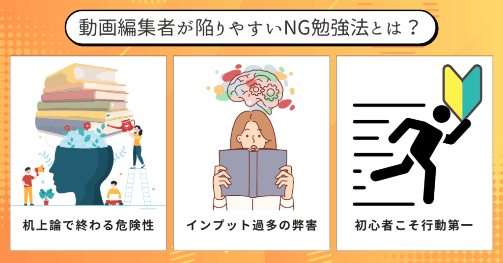 ここからは、動画編集者がつい陥ってしまう代表的なNG勉強法を具体的に見ていきましょう。