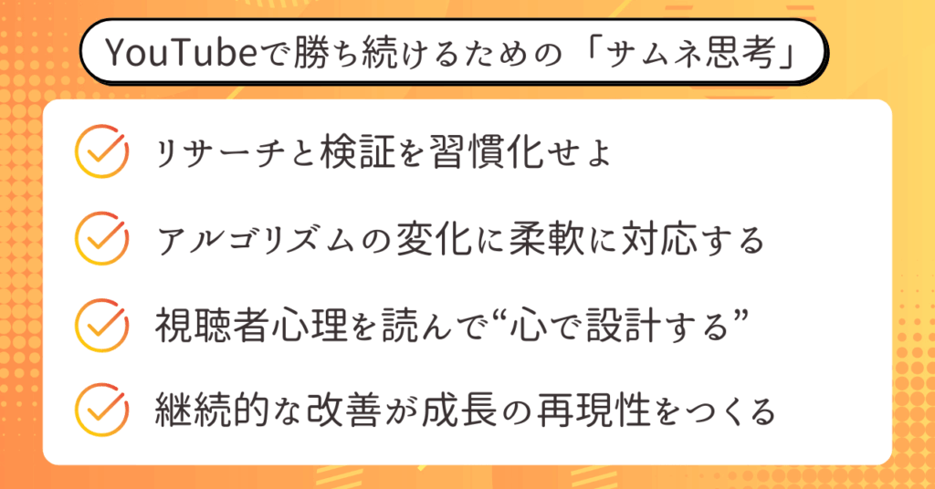 まとめ:サムネイルは“思考”と“改善”で勝ち続ける