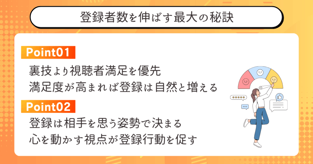 大切なのは「視聴者が登録することで得られるメリットを自然に理解できる」状態をつくることです。